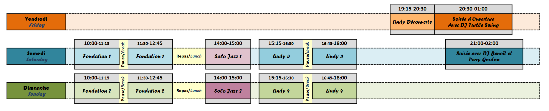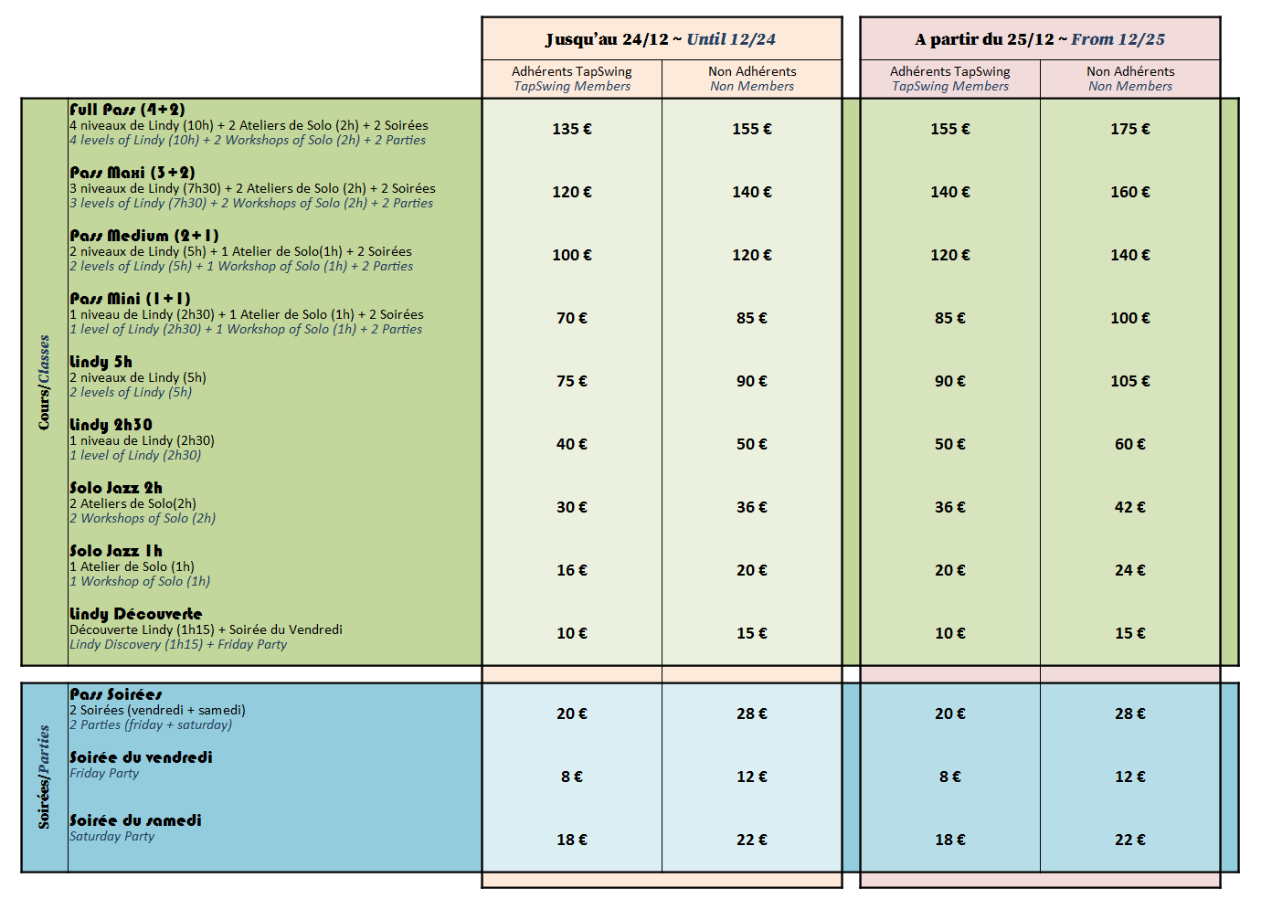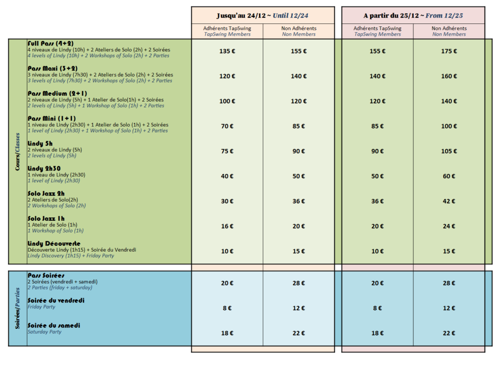 Attention les organisateurs et les professeurs se réservent le droit de refuser toute personne qui se sera surestimée en terme de niveau alors choisissez bien vos cours.